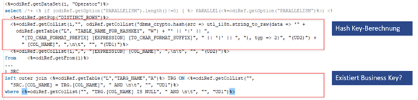 Der Code des Knowledge Modules ersetzt diese Ermittlung der nichtexistierenden Business Keys:
