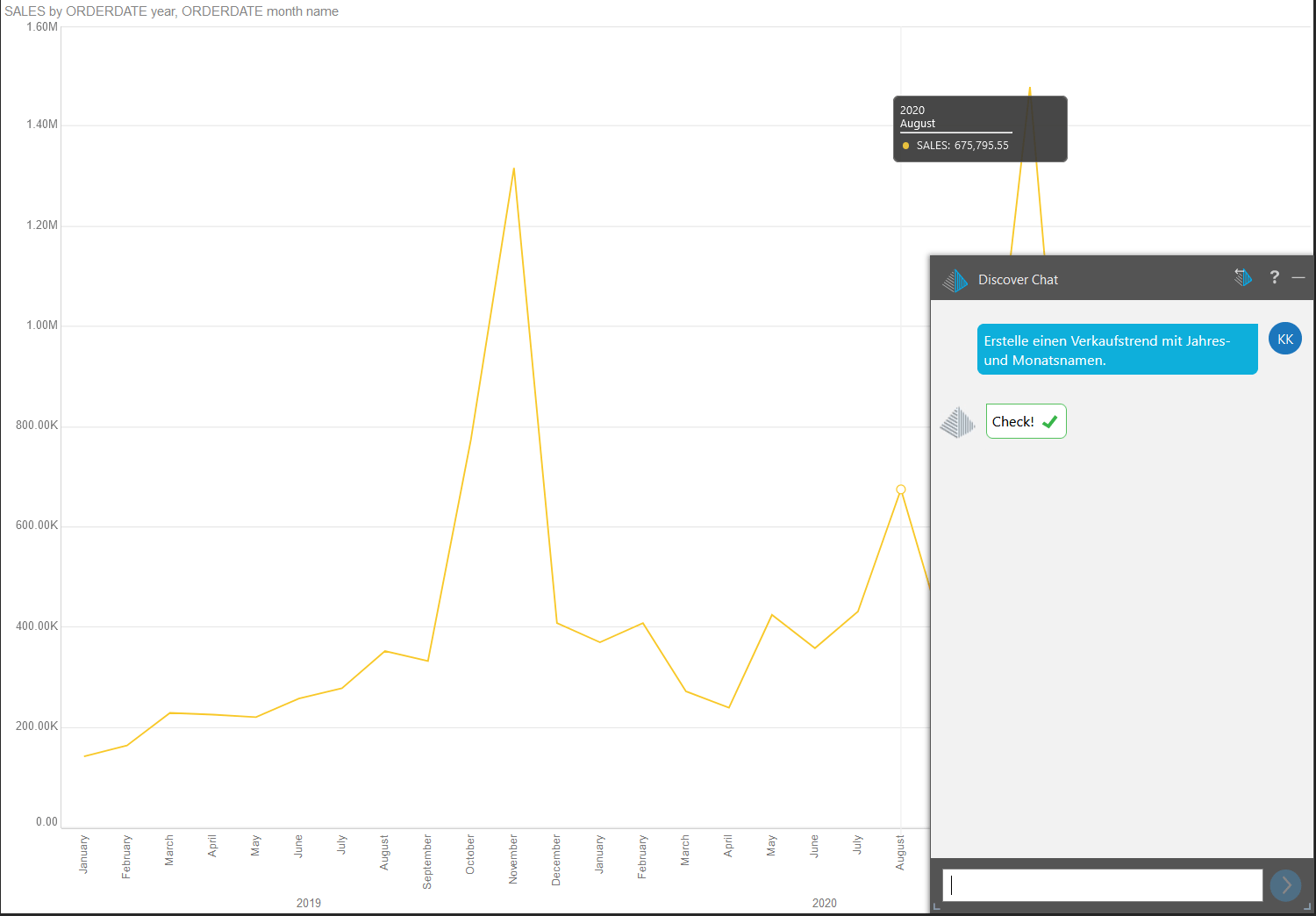 2. Schreibe einen Prompt, wie: „Erstelle einen Verkaufstrend mit Jahres- und Monatsnamen“.