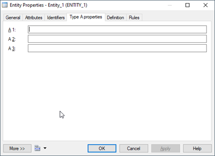 Abhängig vom dort ausgewählten Wert erscheint entweder der zusätzliche Reiter ‚Type A properties‘ oder ‚Type B properties‘: