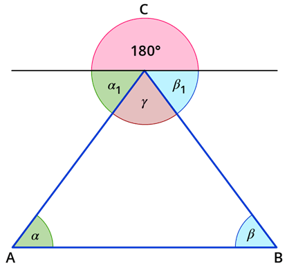 Ein Mensch kann die Winkelsumme im Dreieck durch Logik herausfinden. Statt Daten zu analysieren können Menschen Axiome und bekannte Gesetze verwenden, um neue Zusammenhänge zu erkennen. In Abbildung 1 ist die Herleitung der Winkelsumme dargestellt. Mit Hilfe einer zur Grundseite parallelen Gerade an der Spitze des Dreiecks und des Wechselwinkelsatzes kann bewiesen werden, dass die Winkelsumme 180 Grad betragen muss. Der Mensch versteht, dass die Winkelsumme im Dreieck 180 Grad betragen muss, indem er dieses zu Grunde liegende Prinzip begreift. Eine solche Herleitung kann eine KI nicht selbst entwickeln.