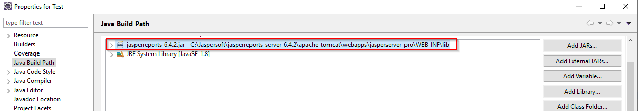 2) JasperServer jar File zum Project hinzufügen