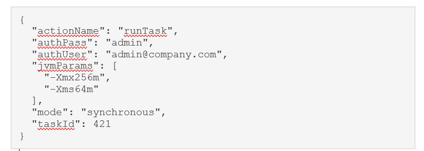 Dieser Talend Job kann über die Methode runTask ausgeführt werden. Die zuvor geholte ID wird dafür im Rest-Aufruf benötigt:
