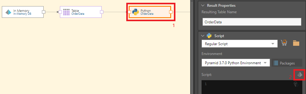 - Um eine Vorschau der durch das Skript transformierten Daten zu erhalten, klicke auf das Augensymbol.