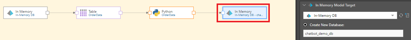 - Nun fügen wir ein Python Skript ein und klicken auf das Pyramid Symbol, um den ChatBot zu starten.