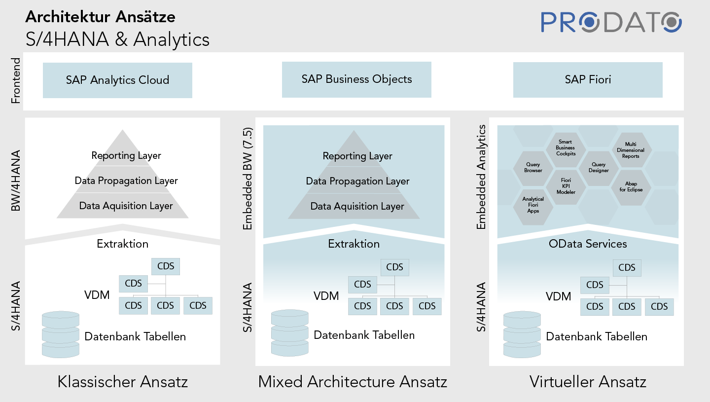 Wie anfangs in der Übersicht aufgezeigt , gibt es verschiedene Ansätze, wie eine Reporting-Architektur aufgesetzt werden kann. Ob mit den gegebenen Möglichkeiten des Embedded Analytics überhaupt noch ein BW für ein unternehmensweites Reporting benötigt wird, ist fraglich.