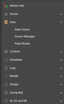 - Im Admin Menü gibt es einige Optionen, um eine Daten Quelle hinzuzufügen, wählt man „Data“ mit dem Unterpunkt „DataSource“ aus.
