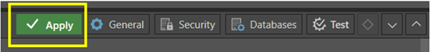 - Wenn der Test erfolgreich war, erhält man hier einen Grünen Balken nun kann man auf Apply drücken, um die Datenquelle SAP HANA so erfolgreich anzubinden.