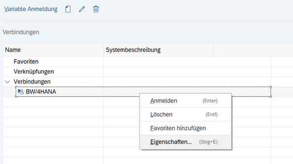 - Im SAP LOGON: