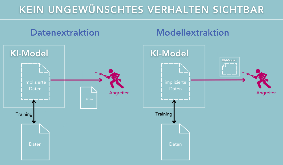 Nochmal betont werden muss, dass sich in diesen Fällen das KI-System einwandfrei verhält und spezifisches Verhalten für einen Angriff ausgenutzt wird.